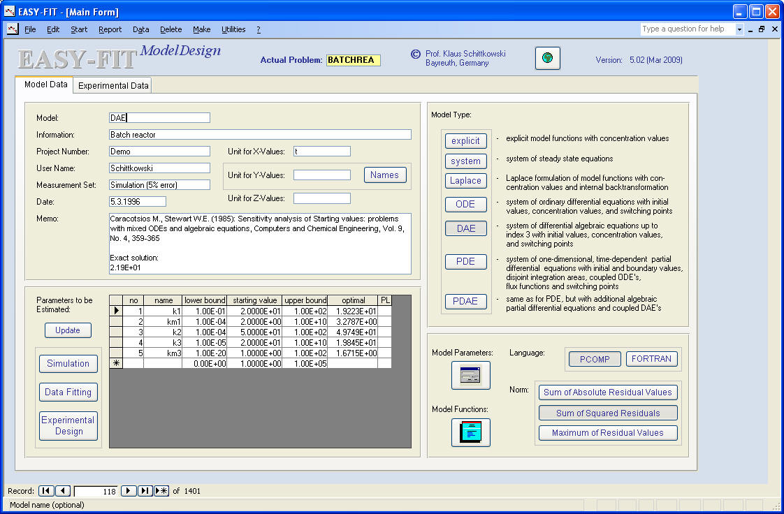2. Caracotsios M., Stewart W.E. (1985): Sensitivity analysis of Initial
