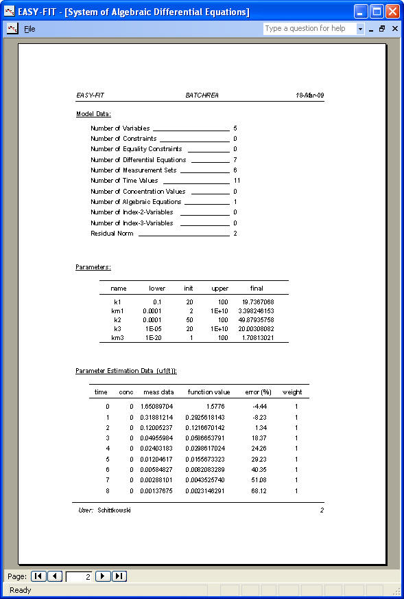 Report on parameter values, residuals, performance, etc. (or export to Word):