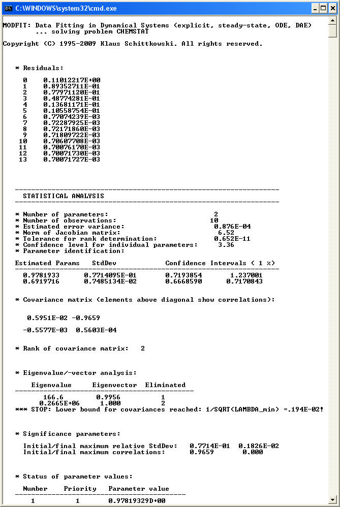 Numerical results (computed by the least squares code DFNLP):