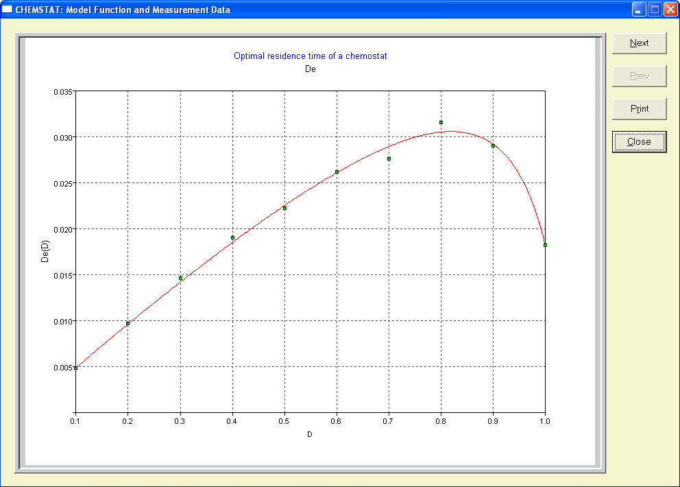 The model describes the residence time in a chemostat reactor in form of a
