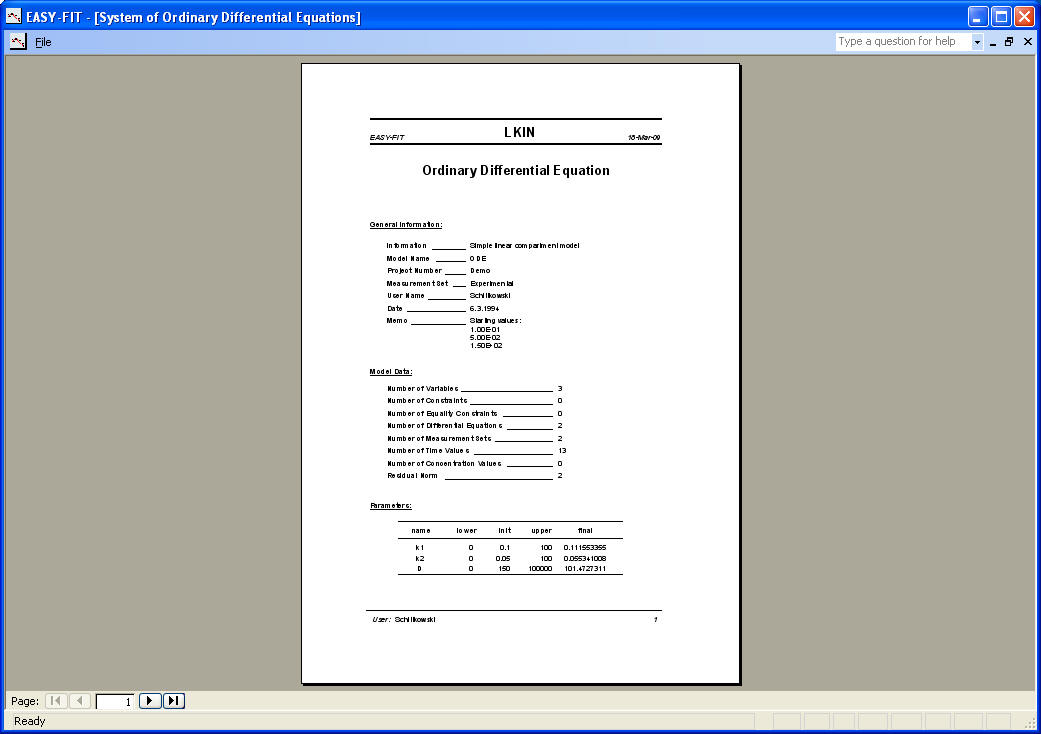 Report on parameter values, residuals, performance, etc. (or export to Word):