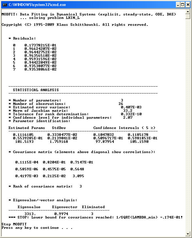 Numerical results (computed by the least squares code DFNLP):