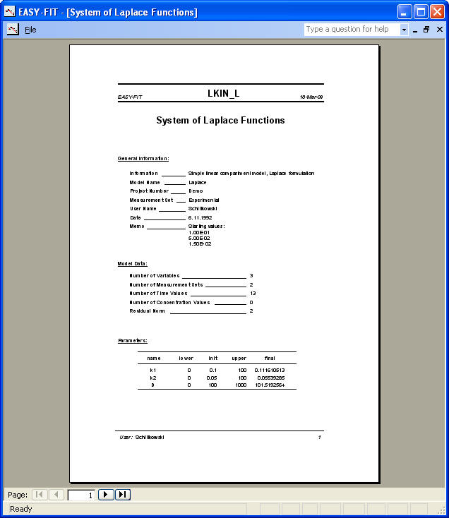 Report on parameter values, residuals, performance, etc. (or export to Word):