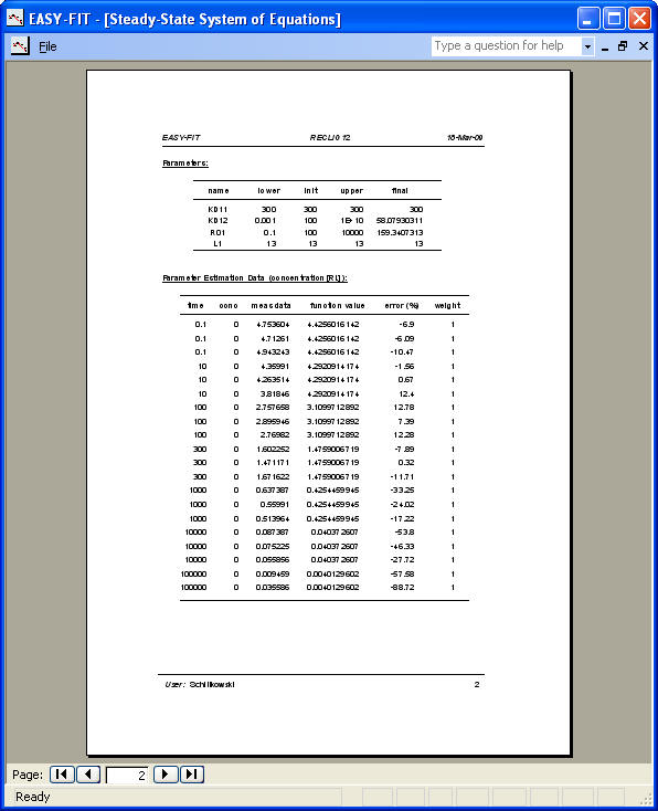 Report on parameter values, residuals, performance, etc. (or export to Word):