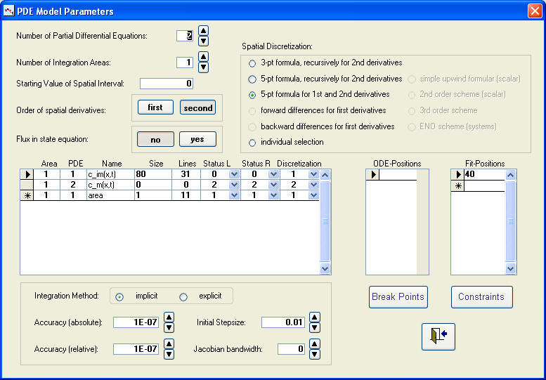 The subindices 't' and 'x' or 'xx', respectively, denote the partial differentiation with respect to time variable t and space variable x. We suppose homogeneous initial values Cim(x,0) = Cm(x,t) = 0 and boundary conditions of the form
