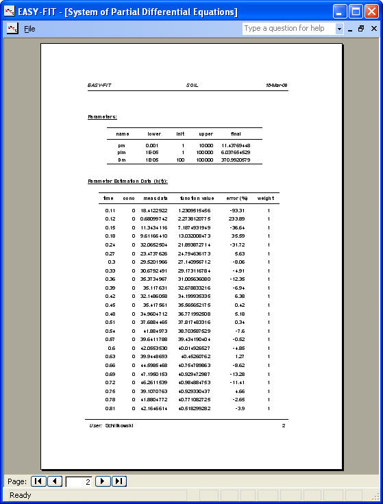 Report about parameter values, residuals, performance, etc. (or export to Word):