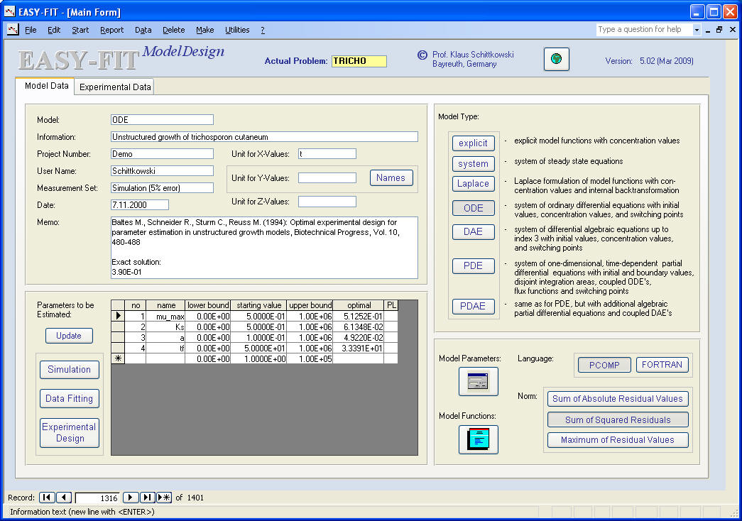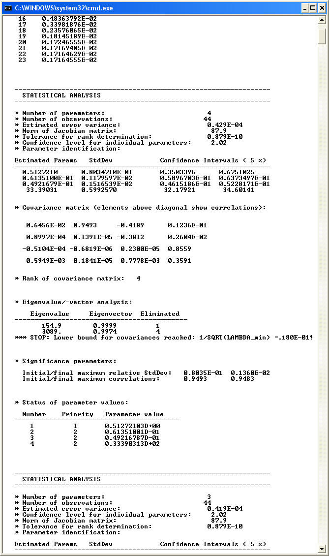 Numerical results (computed by the least squares code DFNLP):