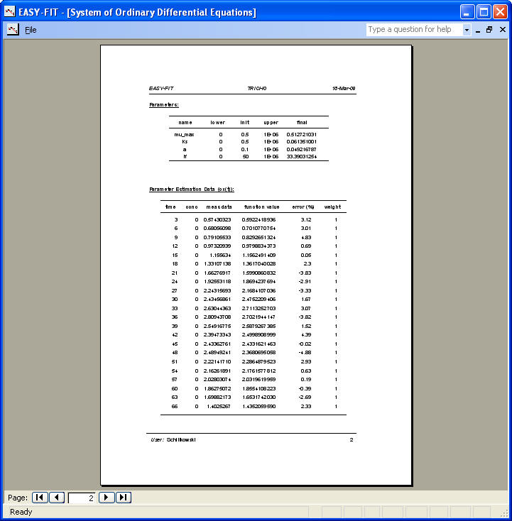 Report on parameter values, residuals, performance, etc. (or export to Word):